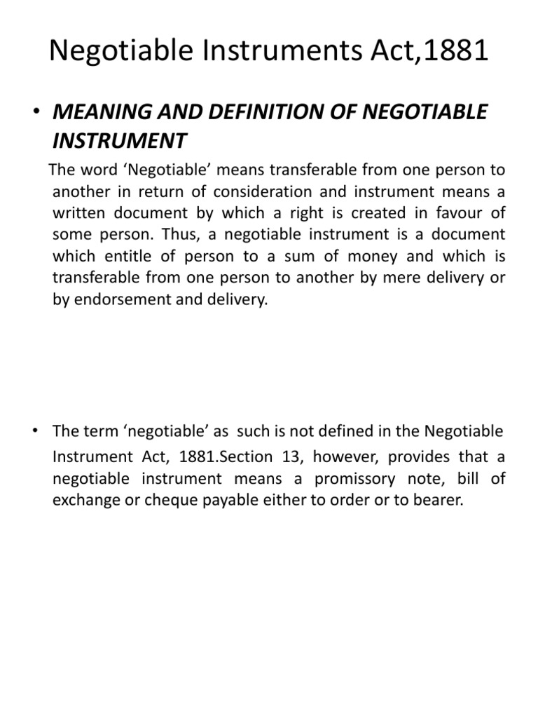 Negotiable Instruments Act 1881 Meaning And Definition Of Negotiable Negotiable Instrument Cheque - Negotiable instruments in india are governed under the negotiable instrument act 1881.